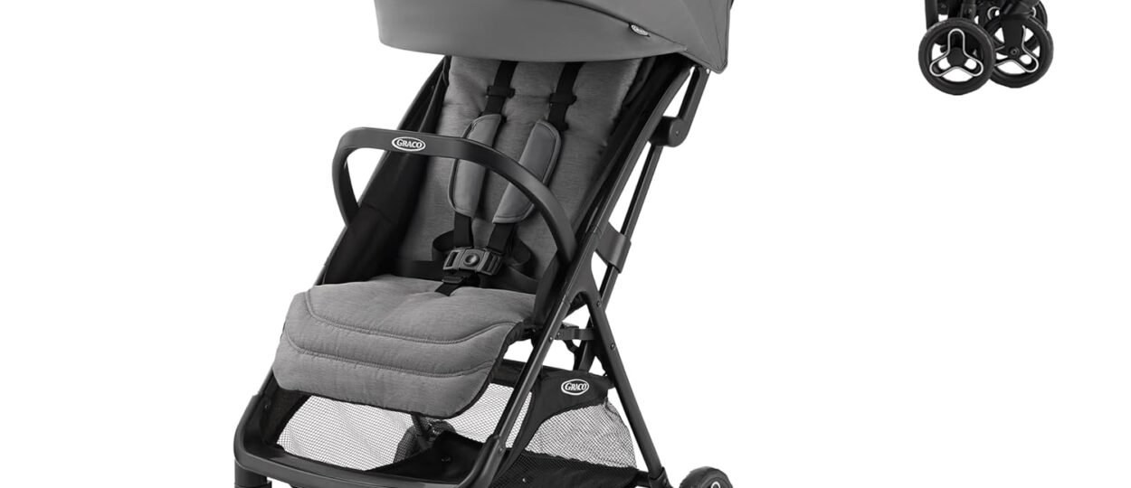 The Graco Ready2Jet Compact Stroller features an automatic, self-fold with one-hand activation that makes it easy to fold and unfold, while its self-standing fold keeps your hands free. Weighing just 13.2 lb—less than two gallons of milk—this compact stroller is fully-featured and ultra lightweight! Experience the added convenience of a…