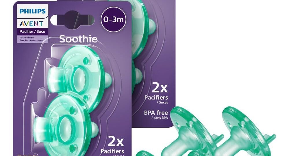 Philips Avent Soothie one-piece newborn pacifiers are specially sized and shaped for babies 0-3 months old and adhere to the American Academy of Pediatrics guidelines¹. The set includes 4 green pacifiers.Soothies are made of hospital-grade, BPA-free and latex-free silicone for comfort and durability. A collapsible, symmetrical-shaped nipple supports healthy oral…