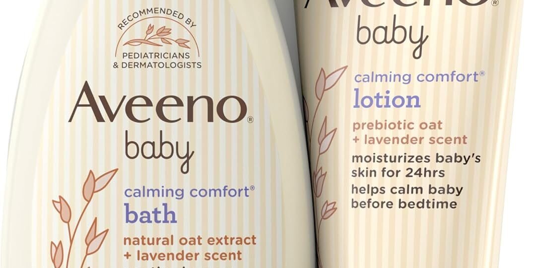 Help calm your baby before bedtime with the Aveeno Baby Nighttime Calming Comfort Bath & Lotion Set with relaxing scents of lavender & vanilla. This baby bath set includes Calming Comfort Bath & Wash & Calming Comfort Moisturizing Lotion, both designed for baby’s dry, delicate skin. The rich, lathering baby…