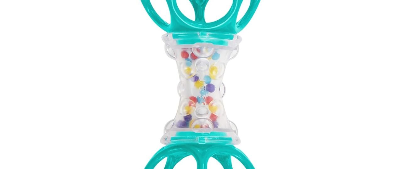 Shake, shake, shake it, baby! Made for the littlest of fingers, the Oball Shaker Toy is perfect for baby’s hands to grip and grab. The clear, textured handle reveals brightly colored beads she’ll love to hear rattling all around. On each end, the rattle is made of flexibly firm Oball…