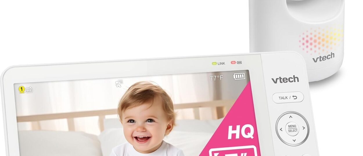 Watch over your little one at home with the VTech Advanced HQ Max series video baby monitor. Designed after your parenting needs, this 7″ IPS LCD Screen baby monitor offers wide viewing and enhanced color accuracy, the camera has pan and tilt capability with 4x zoom and 110° wide angle…