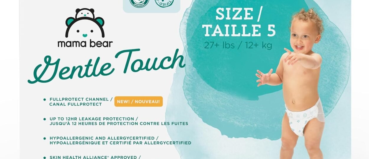 Mama Bear Gentle Touch Diapers. Gentle on skin. Cute on behinds. Our diapers offer trusted leakage protection for up to 12 hours. They’re dermatologist tested, hypoallergenic and thoughtfully made with ingredients that are safe on baby’s delicate skin. The contoured shape wraps baby in a comfortable fit that stays in…