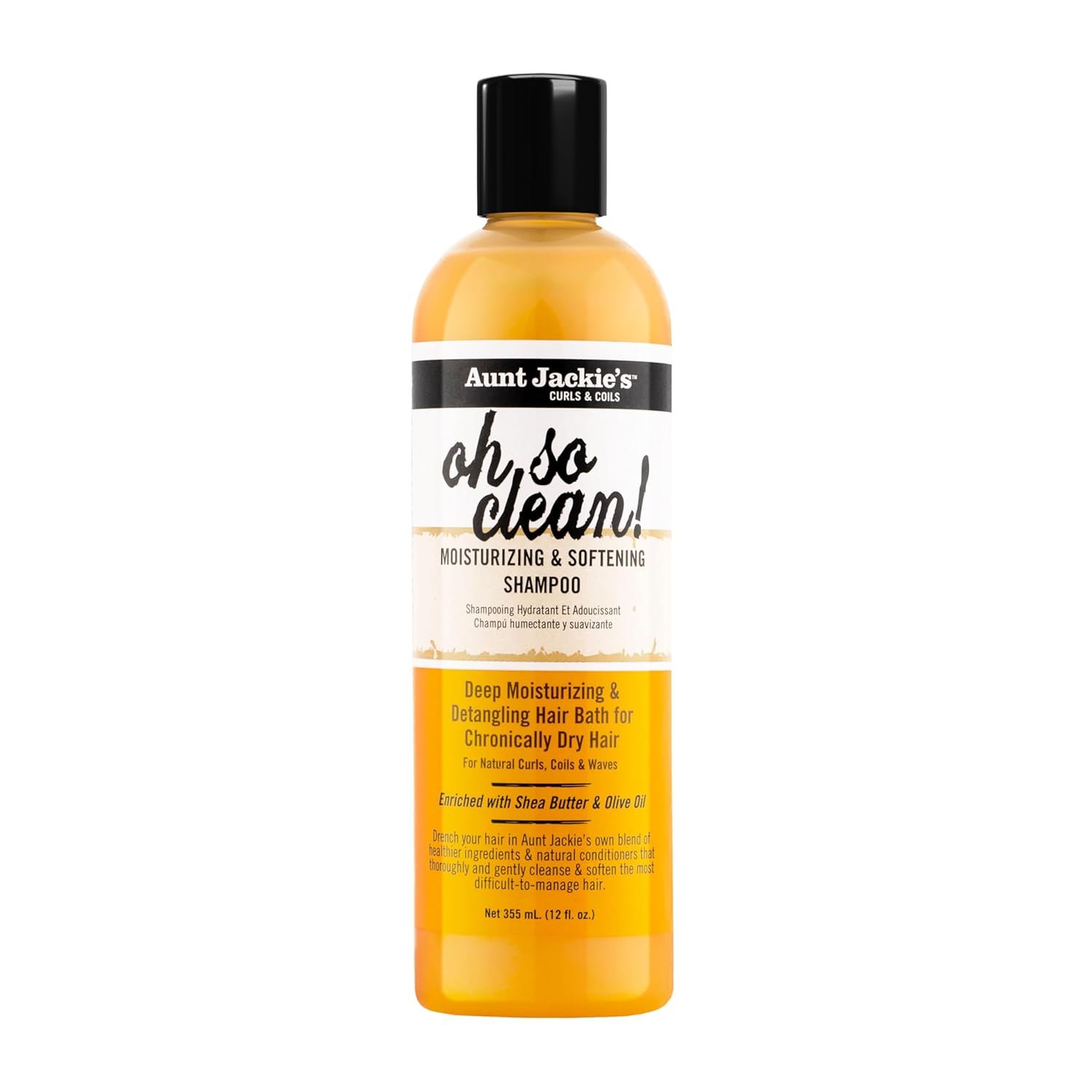 Aunt Jackie’s Curls and Coils Oh So Clean Deep Moisturizing and Softening Hair Shampoo for Natural Curls, Coils and Waves, Enriched shea Butter, 12 oz