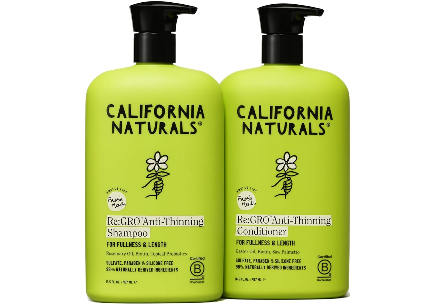 California Naturals Re:GRO Shampoo and Conditioner Set, Anti-Thinning & Hair Growth Support, All Hair Types, Vegan, Natural, Cruelty Free, Silicone, Paraben & Sulfate Free for Women & Men, 16.5 oz