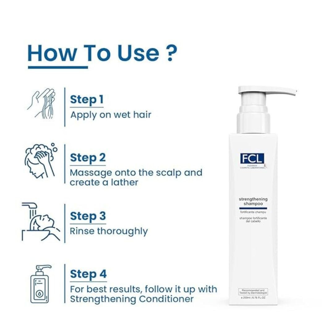 FCL Strengthening shampoo | Strengthens hair | Controls hair fall | Reduces frizz | Promotes hair growth | Cleans scalp | Mild shampoo | Paraben & Sulphate free – 200ml | 6.76Fl Oz