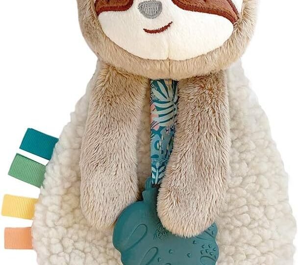 Itzy Ritzy – Itzy Lovey Including Teether – Baby Lovey with Teether, Textured Ribbons & Dangle Arms – Features Crinkle Sound, Sherpa Fabric and Minky Plush (Sloth)