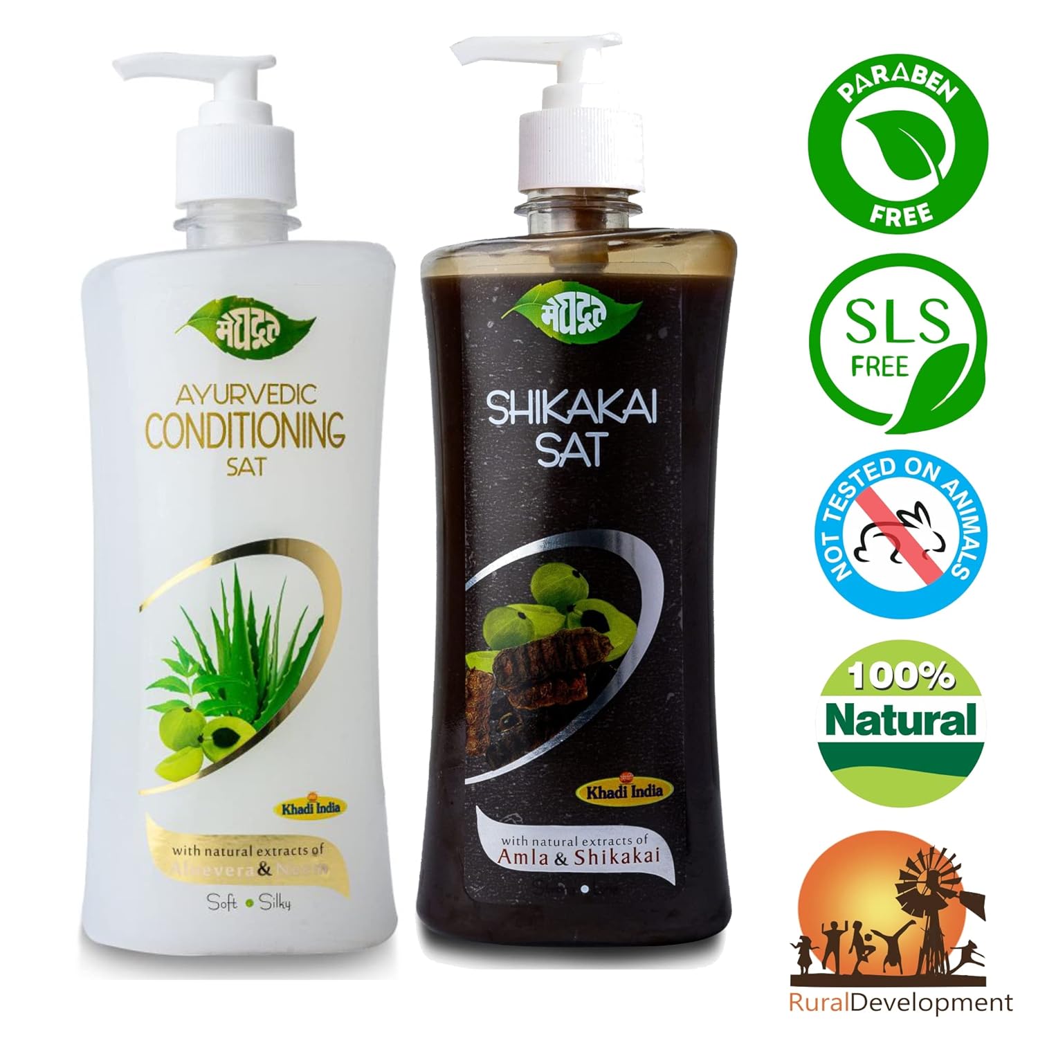 Meghdoot Ayurvedic Shampoo Combo Pack Of Shikakai Shampoo With Amla 500ml And Conditioning With Aloevera And Neem 500ml For Dry And Damaged Hair (Pack of 2)