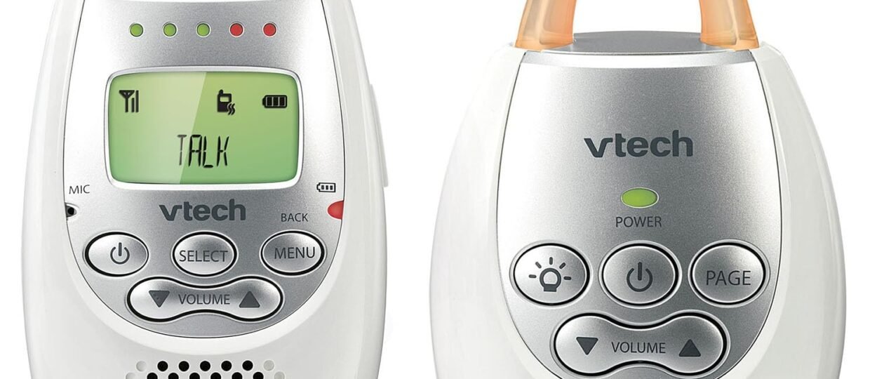 VTech Communications DM221 Audio Baby Monitor with up to 1,000 ft of Range, Vibrating Sound-Alert, Talk Back Intercom & Night Light Loop, White/Silver